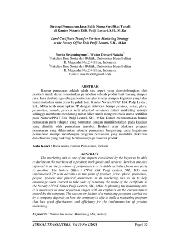 Setyoningrum, Novita and Natalia, Wulan Destari (2021) Strategi Pemasaran Jasa Balik Nama Sertifikat Tanah di Kantor Notaris Etik Pudji Lestari, S.H., M.Kn. JURNAL TRANSLITERA, 10 (1). pp. 32-44. ISSN 2527-3396