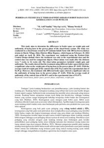 Penelitian bertujuan untuk mengetahui perbedaan ruang tempat pakan (feeder space) terhadap pertambahan bobot badan dan keseragaman ayam petelur fase grower sistem closed house. Penelitian telah dilakukan pada kandang closed house milik PT Jatinom Indah Farm dengan strain ayam Isa brown sebanyak 180 ekor di Desa Slorok, Kecamatan Doko, Kabupaten Blitar yang diawali pada tanggal 25 Februari 2024 dan diakhiri pada tanggal 28 April 2024. Eksperimen dilakukan dengan menggunakan metode Posttest-Only Control Design dimana perlakuan hanya ada pada kelas eksperimen dan kelas kontrol digunakan untuk objek pembanding. Pengamatan dilakukan setelah ayam berumur 7 minggu hingga 16 minggu. Adapun parameter pengamatan meliputi pertambahan bobot badan, keseragaman, suhu kandang, kelembapan, kecepatan angin dan suhu ayam.