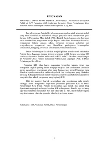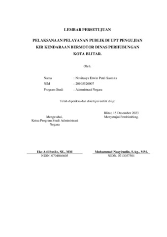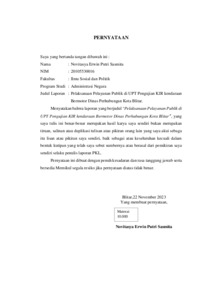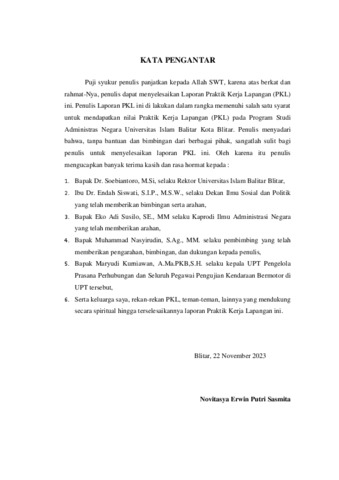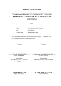 SASMITA, NOVITASYA (2024) PELAKSANAAN PELAYANAN PUBLIK DI UPT PENGUJIAN KIR KENDARAAN BERMOTOR DINAS PERHUBUNGAN KOTA BLITAR. Technical Report. UNIVERSITAS ISLAM BALITAR. (Unpublished)