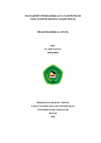 Naufal, M. Arif (2024) MANAJEMEN PEMELIHARAAN AYAM PETELUR FASE STARTER SISTEM CLOSED HOUSE. Technical Report. Universitas Islam Balitar, Blitar. (Unpublished)