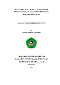 Tarmuji, Widianto aji lusiyo (2024) MENEJEMEN PEMELIHARAAN AYAM BOILER DI DESA NONGKOJAJAR KECAMATAN PURWODADI KABUPATEN PASURUAN. Technical Report. UNIVERSITAS ISLAM BALITAR. (Unpublished)