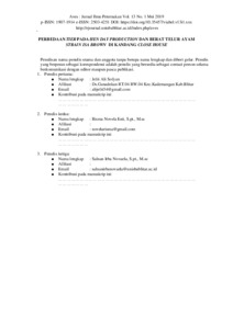 Keyword : Closed House, Tier Differences, HDP, Egg Weight, Isa Brown