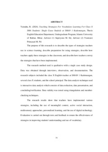 Yainahu, Roslita (2024) TEACHING STRATEGIES FOR VOCABULARY LEARNING FOR CLASS X SMA STUDENTS: SINGLE CEASE STUDY AT SMAN 1 KADEMANGAN. Other thesis, Universitas Islam Balitar, Blitar.