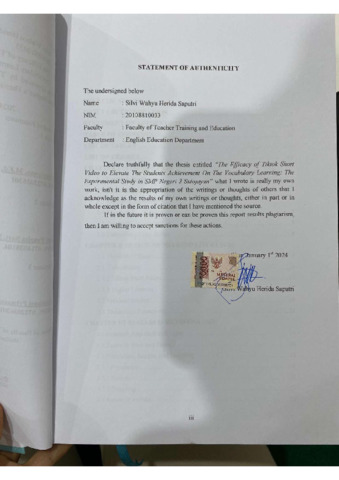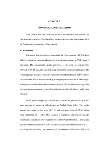 silvi, silvi wahyu (2024) THE EFFICACY OF TIKTOK SHORT VIDEO TO ELEVATE THE STUDENTS’ ACHIEVEMENT ON THE VOCABULARY LEARNING: THE EXPERIMENTAL STUDY IN SMP NEGERI 3 SUTOJAYAN. Other thesis, Universitas Islam Balitar,Blitar.