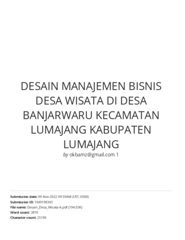 Sunandes, Aris and Puspitorini, Palupi and Zamrodah, Yuhanin (2022) DESAIN MANAJEMEN BISNIS DESA WISATA DI DESA BANJARWARU KECAMATAN LUMAJANG KABUPATEN LUMAJANG. Akuntabilitas, 14 (2): 1. pp. 1-16. ISSN 2527-3906