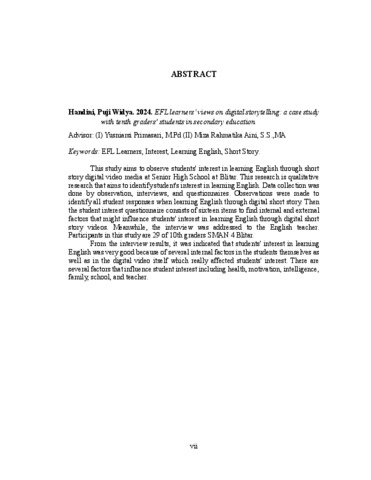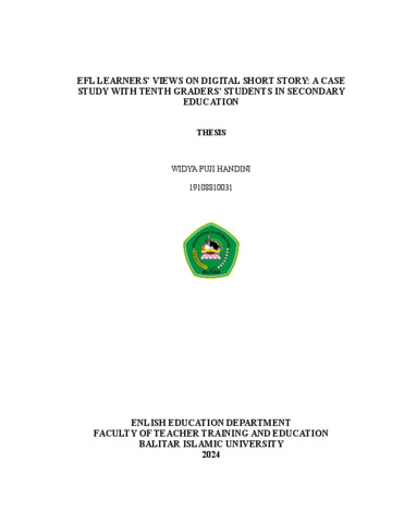 Handini, Puji WIdya (2024) EFL LEARNERS' VIEWS ON DIGITAL SHORT STORY: A CASE STUDY WITH TENTH GRADERS’ STUDENTS IN SECONDARY EDUCATION. Other thesis, Universitas Islam Balitar Blitar.