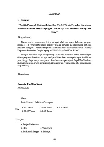 Gervasius, Rivaldino Daput (2024) ANALISIS PENGARUH EKSISTENSI LOKASI DAN WORD OF MOUTH TERHADAP KEPUTUSAN PEMBELIAN PRODUK KERIPIK JAGUNG DI UMKM JAYA TANI KELURAHAN GEDOG KOTA BLITAR. Other thesis, Universitas Islam Balitar.