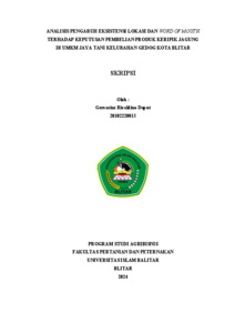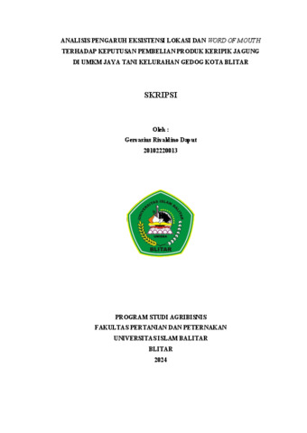 Gervasius Rivaldino Daput. 20102220013. Analisis Pengaruh Eksistensi Lokasi Dan Word Of Mouth Terhadap Keputusan Pembelian Produk Keripik Jagung Di UMKM Jaya Tani Kelurahan Gedog Kota Blitar. Pembimbing: Jeka Widiatama, S.P.,M.P.