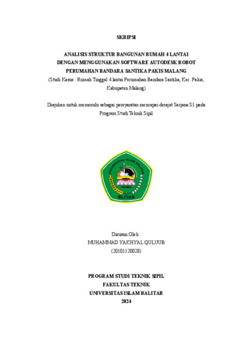 Muhammad Yakhyal Quluub, Yahya (2024) ANALISIS STRUKTUR BANGUNAN RUMAH 4 LANTAI DENGAN MENGGUNAKAN SOFTWARE AUTODESK ROBOT PERUMAHAN BANDARA SANTIKA PAKIS MALANG. Other thesis, Universitas Islam Balitar, Blitar.