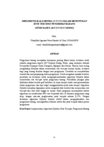 Pengiriman barang merupakan komponen penting dalam bisnis, terutama untuk industri pengiriman seperti J&T Express Gedog, Blitar, yang melayani wilayah Kecamatan Kepanjen Kidul, Kanigoro, Nglegok, dan Garum. Namun, kurir sering menghadapi kesulitan dalam menentukan rute tercepat menuju tujuan, terutama bagi yang kurang familiar dengan area pengiriman. Kesulitan ini menyebabkan tersesat dan memperpanjang waktu pengiriman. Untuk mengatasi masalah tersebut, penelitian ini bertujuan untuk mengimplementasikan algoritma Dijkstra dalam menentukan rute tercepat untuk pengiriman barang. Pemodelan jaringan jalan dilakukan dalam bentuk graf berbobot, di mana simpul (node) merepresentasikan lokasi pengiriman, dan tepi (edge) menggambarkan jarak antar simpul. Algoritma Dijkstra kemudian digunakan untuk mengolah data tersebut dan menemukan rute tercepat dari titik awal hingga ke tujuan. Hasil pengujian menunjukkan bahwa algoritma ini memberikan 90% rute terpendek dari 10 skenario pengiriman yang diuji, dengan rata-rata penghematan jarak tempuh sebesar 8,55%. Dengan demikian, algoritma Dijkstra terbukti efektif dalam mengoptimalkan rute pengiriman barang, meningkatkan efisiensi waktu dan jarak tempuh dalam proses pengiriman.
